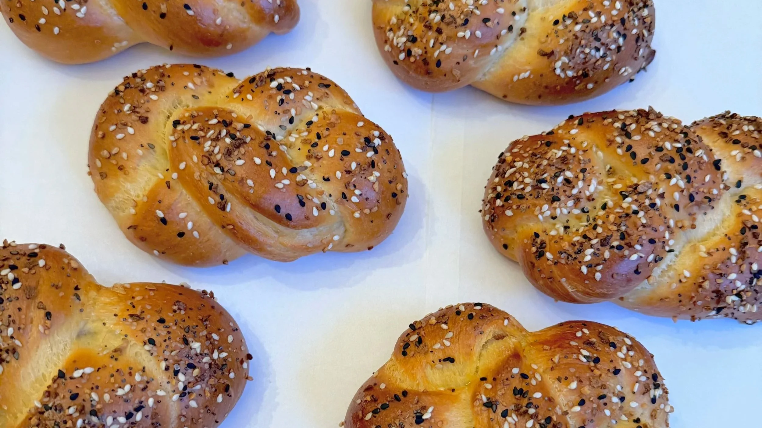 Topping1 large egg white (reserved from above), beaten with 1 tablespoon cold waterEverything bagel seasoning